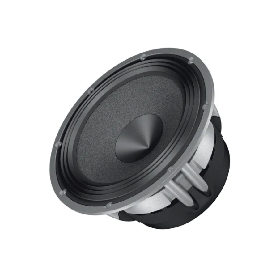 Equipped with an aluminum basket with a great aerodynamic structure, a cotton-fibre paper pressed cone with Light Damping treatment, a Triple Wave surround in butyl rubber and extremely light Copper Clad Aluminium Wire coils, it provides a very high efficiency and a dynamic sound.