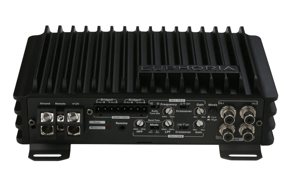 The Euphoria EA4.300 4-channel amplifier is your ultimate solution. Designed for both audiophiles and casual listeners, it offers dynamic, high-performance audio. Key Features:• Power Output: 65W x 4 at 4 ohms, 100W x 4 at 2 ohms, delivering clear, full-range sound.• Bridgeable Design: Easily drive a subwoofer for enhanced low-end performance.• High-Efficiency Class D Design: Ideal for modern electrical systems.• Adaptive Crossover: Fine-tune your audio for optimal sound.• Precision Tuning: Metal potentiometers ensure stable settings.• 4-Layer PCB: Delivers cleaner, more accurate sound.• Compact Design: Easy to install without compromising on power. Elevate your car audio experience with the Euphoria EA4.300 for sound like never before.