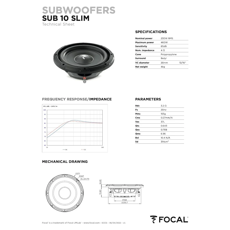 FOCAL SLIM 10 inch SUBWOOFER SUB10SLIM