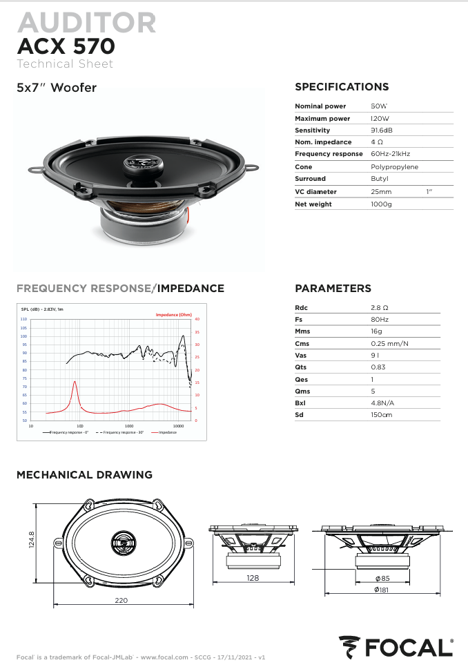 ACX 570 can be linked with other electronics or directly connected to the vehicle’s original amplifier to enhance your in-car listening experience. Its high sensitivity guarantees an unrivalled level of performance in its category. It is perfect for a début Focal system and/or for improving your original sound system.