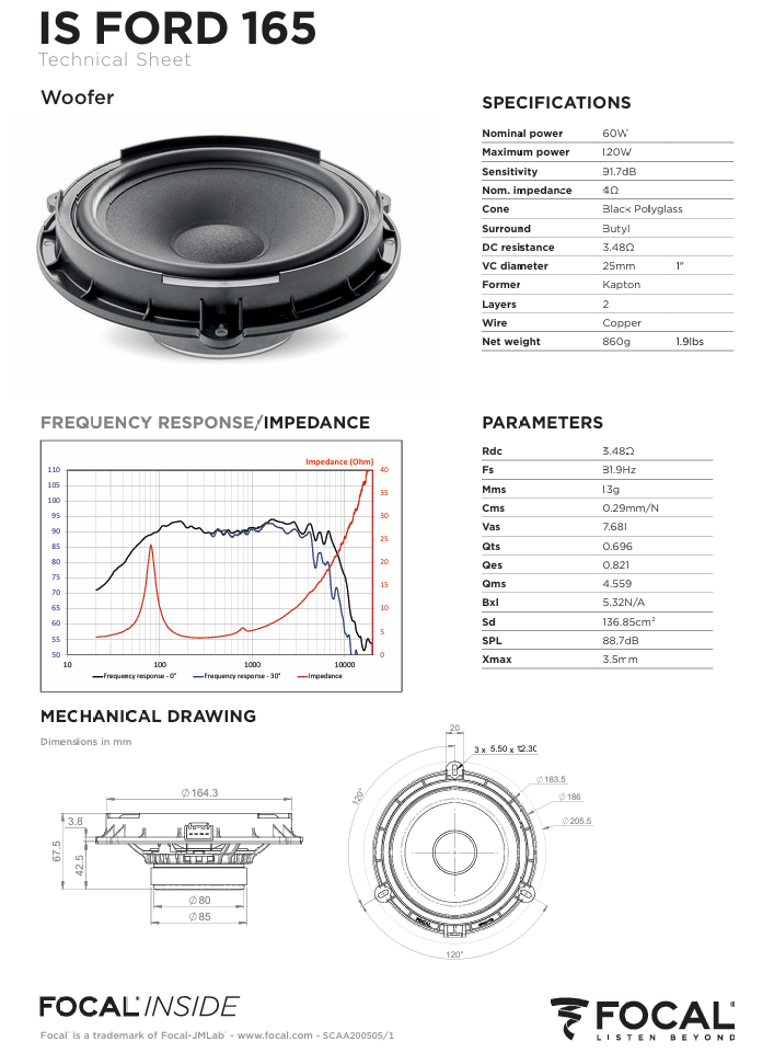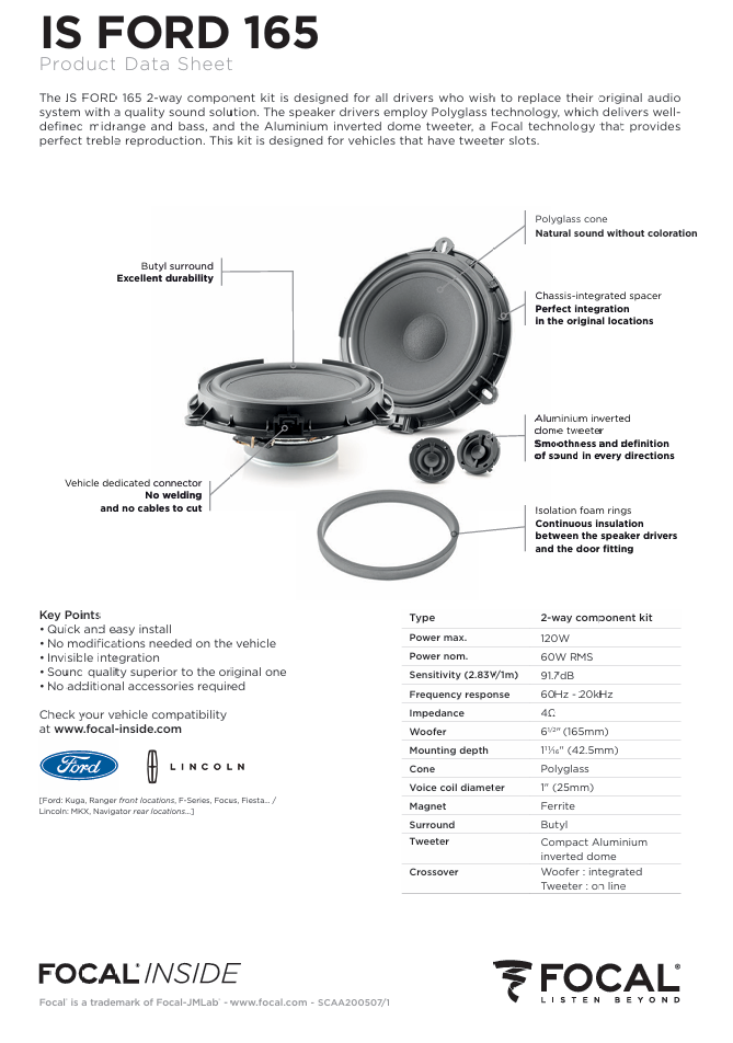 The IS FORD 165 2-way component kit is designed for all drivers who wish to install a quality sound solution in their FORD vehicle.