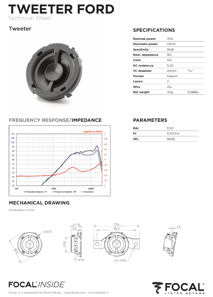 The speaker drivers feature Polyglass technology, which delivers well defined midrange and bass, and the Aluminium inverted dome tweeter, a Focal technology that provides perfect treble reproduction.