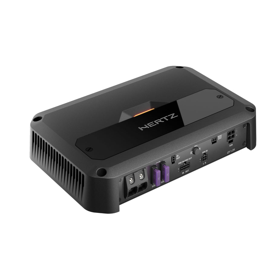 Step into a world of refined bass with the Hertz CENTO POWER CP 1.2K This mono amplifier is engineered for high efficiency, reaching an efficiency greater than 89% within a compact, robust aluminum diecast casing. The CP 1.2K is designed to integrate seamlessly into both traditional and modern vehicle setups, thanks to its Universal Speaker Simulator and a wide operating voltage range suitable for electric vehicles. It features advanced noise rejection capabilities to ensure crystal-clear sound quality. With adjustable input levels, a low-pass crossover filter, a bass boost, and a subsonic filter, this amplifier allows for precise customization of your sound, making it an ideal choice for those seeking powerful, immersive bass without compromise.