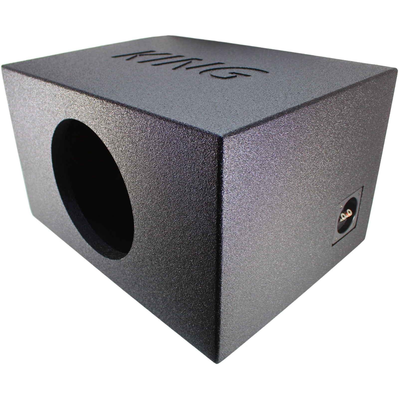 Unleash powerful bass in a compact package with the Single 10" SPL Style Side Ported King Box. Designed for audio enthusiasts who crave deep, resonant sound, this enclosure offers 2.5 cubic feet of air space, precisely tuned to 38Hz for maximum bass impact. Its side-ported design ensures a smooth and aggressive bass response, while the durable sprayed finish provides a sleek, professional look. Perfect for those looking to enhance their vehicle's audio system with style and substance.