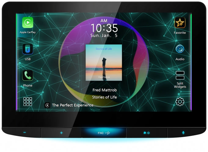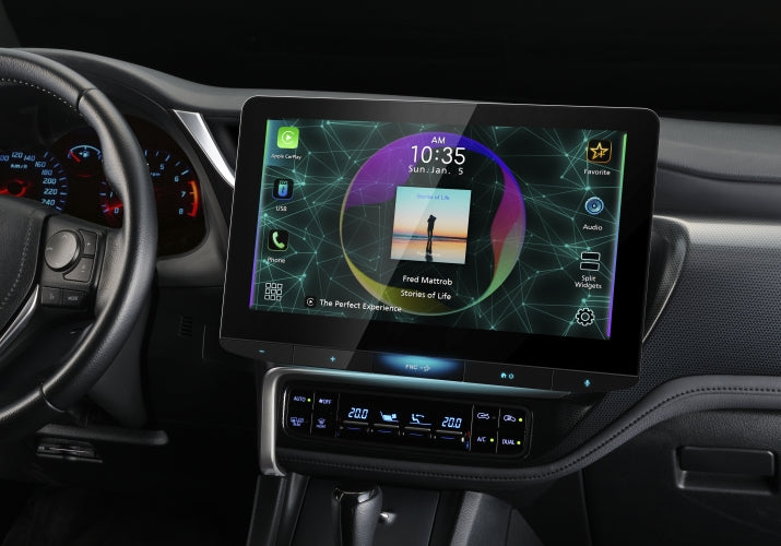 Similar to a heads-up display on a jet, JVC's KW-Z1000W digital media receiver uses its impressive 10" touchscreen display as a big helper on your drive. Its easy-to-read display shows off familiar smartphone interfaces by using wired or wireless Apple CarPlay® and Android Auto™ — incredibly handy for navigation, music, and podcast apps. Even when you're simply using the JVC's display, you can customize it with the look that works best for you. And if you're planning to integrate factory and add aftermarket cameras, you can connect up to four cameras to this receiver. JVC ups the ante with this receiver's built-in, multi-user Bluetooth®, high-res music capability, and lots of tweaks to refine (or even redefine) your entire system's sound.