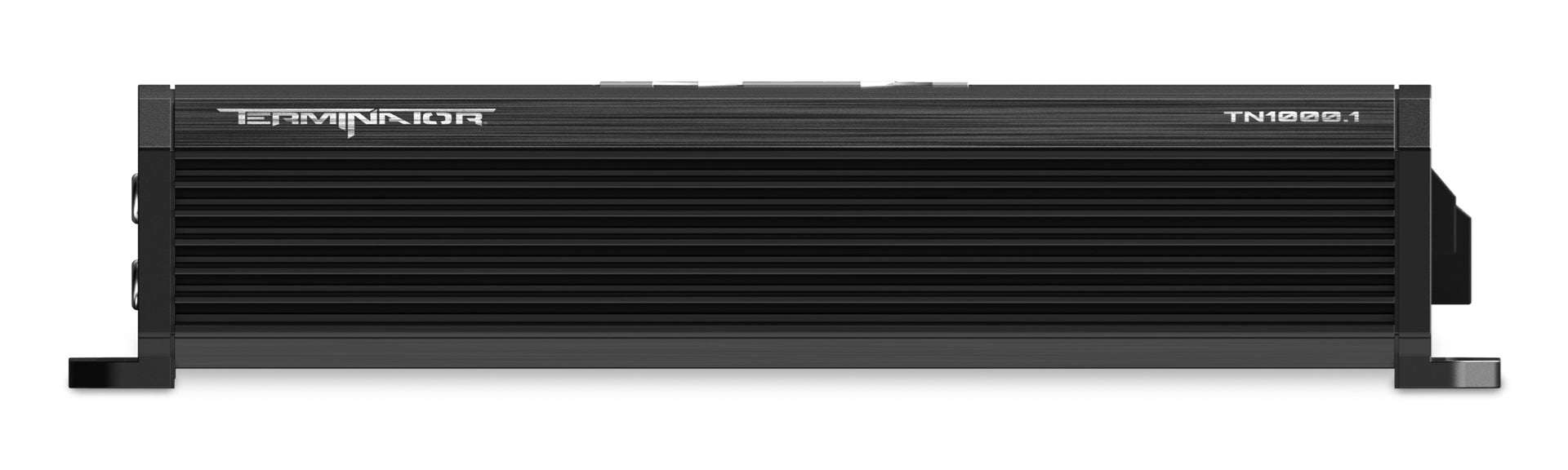 The TERMINATOR TN1000.1 Mono Channel amplifier features true RMS power in a newly made chassis redesigned to fit the tightest locations. The Class D topology increases efficiency and reduces heat delivering maximum output to your subwoofers. State-of-the-art circuit protection will keep your amplifier safe and let you know the first sign of trouble. With integrated adjustment circuits, you will be able to tune the audio the way you want, and the remote bass control gives you immediate control anywhere.
